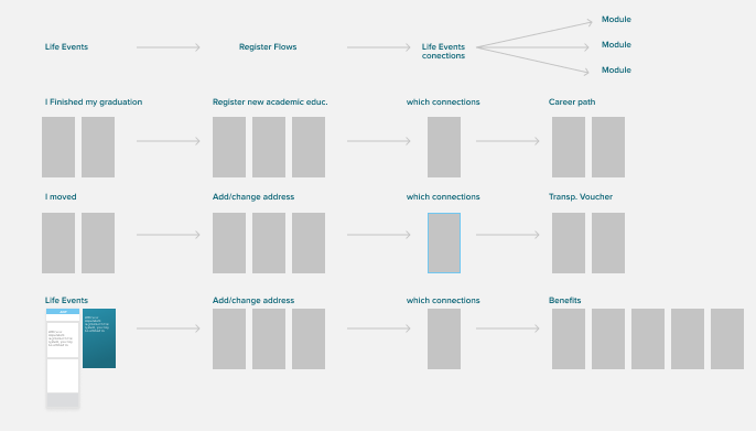 The figure below represents the concept of the Life-Event's flows. How each event connects with each benefit.